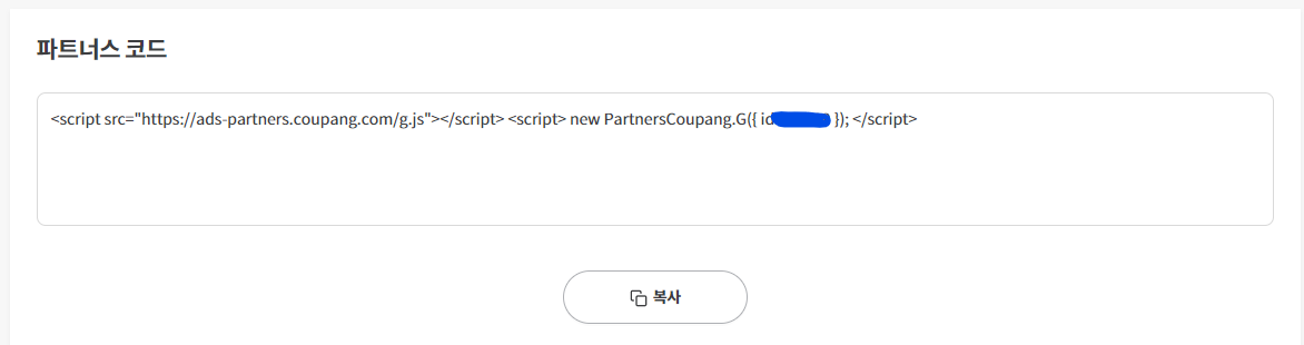생성된 배너를 복사하여 스크립트가 가능한 곳에 붙여 넣으시면 됩니다.