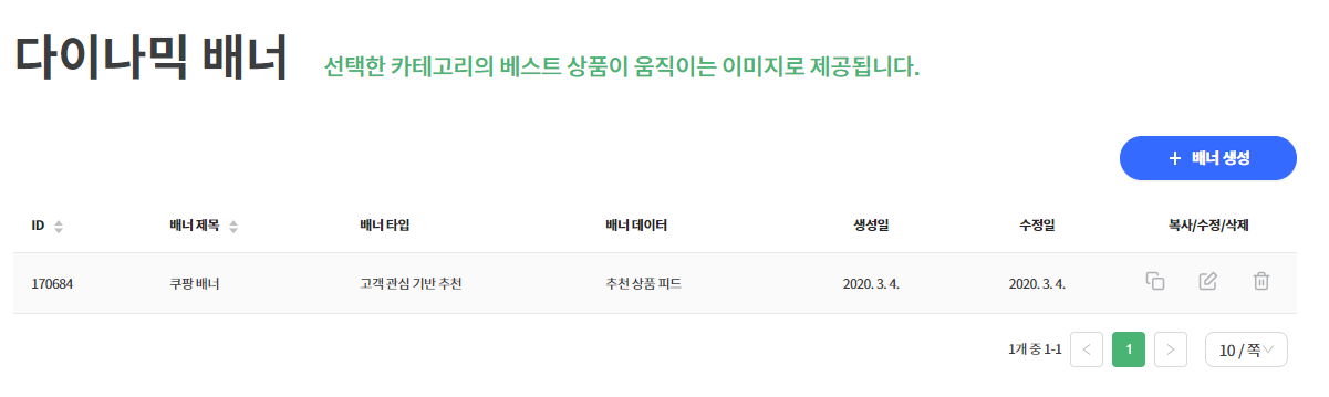 원하는 배너를 만들었으면 배너 만들기를 클릭합니다.