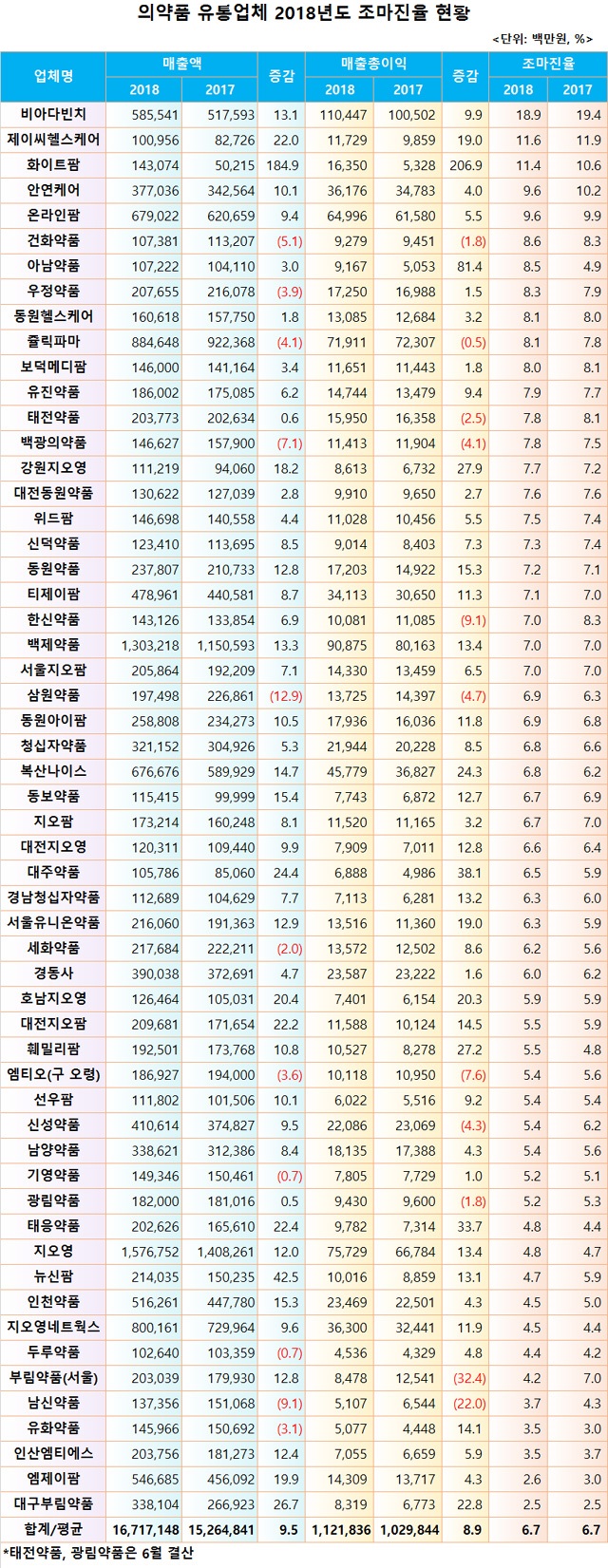2018년 조마진율입니다. 지오영은 이때 조마진율(매출총이익)이 5%가 안되었습니다. 그래도 영업이익을 가지고 갔지요