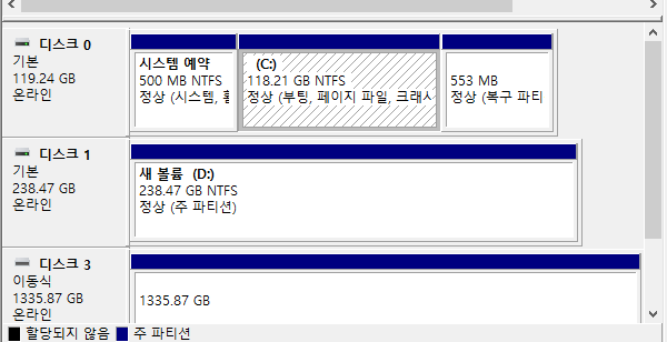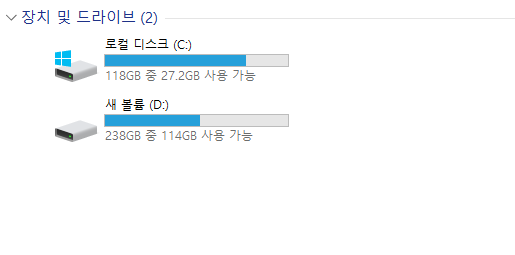 OS에서는 인식이 안되는데 신기하게도 장치 관리자에서는 확인이 가능했다.