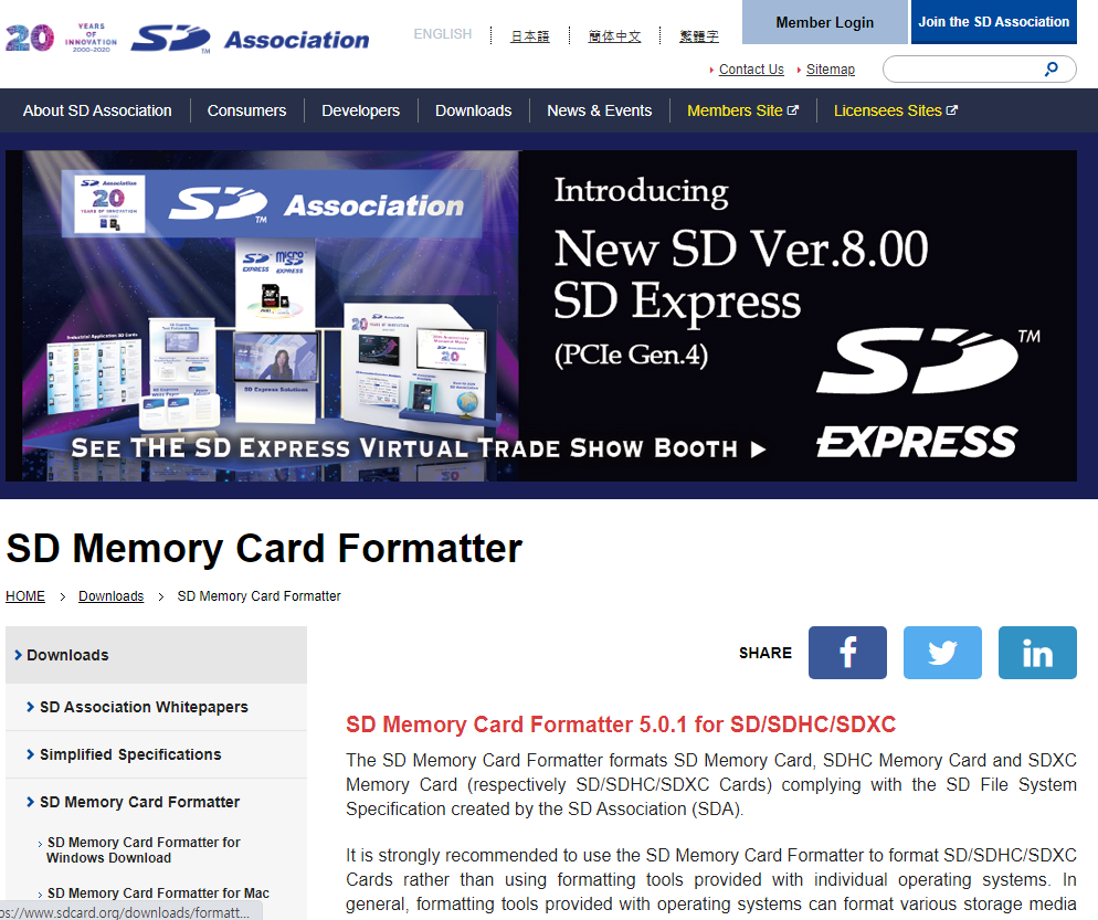 SD Memory Card Formatter 5.0 for SD/SDHC/SDXC