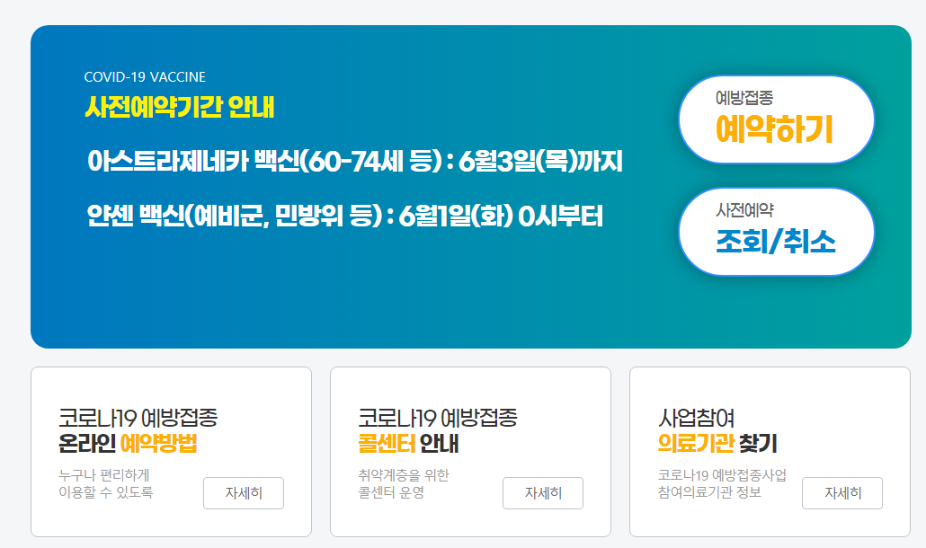 코로나 백신 예약을 위해서는 코로나19 예방접종 사전예약 시스템에 접속해야 합니다.